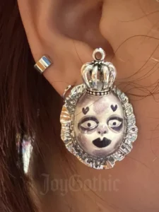 Original price was: $104.43.$75.92Current price is: $75.92.Intricately Crafted Sweet Goth Stud Earrings, Cute Clip-Ons, Gothic Wedding Aesthetic, Girl’s Punk Rock Jewelry