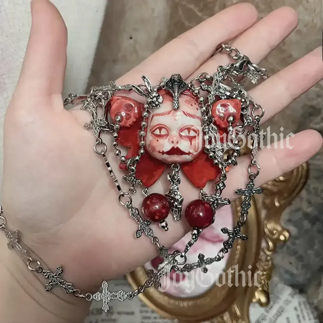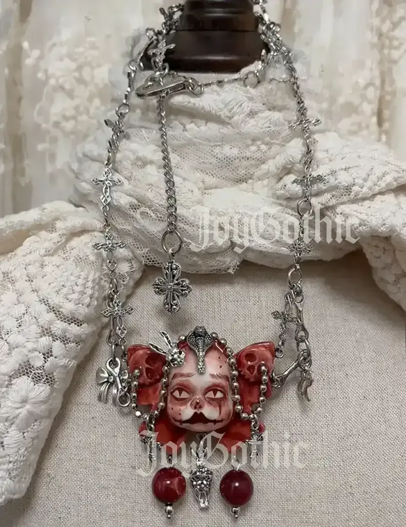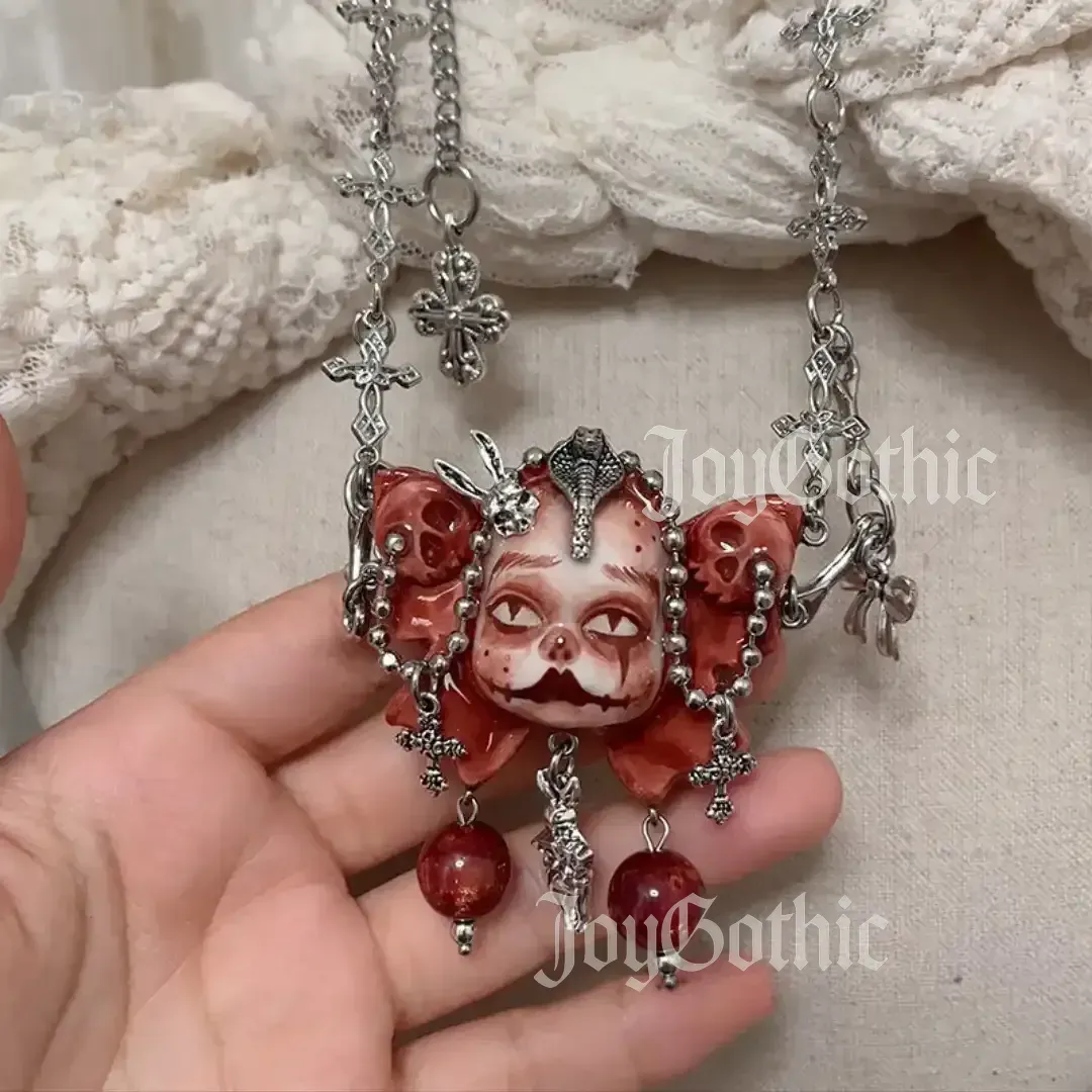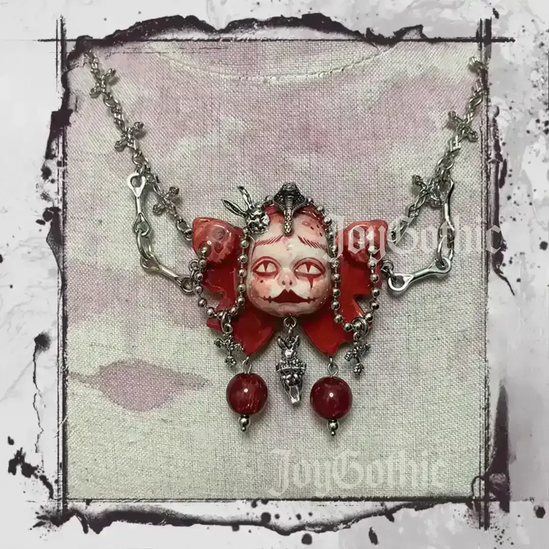| Alt doll pendant goth jewelry | Jewelry that taps into the eerie doll aesthetic | The doll-butterfly design blends innocence and darkness in one unsettling, beautiful piece |