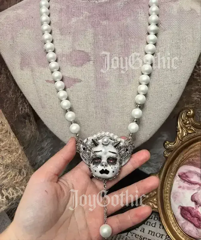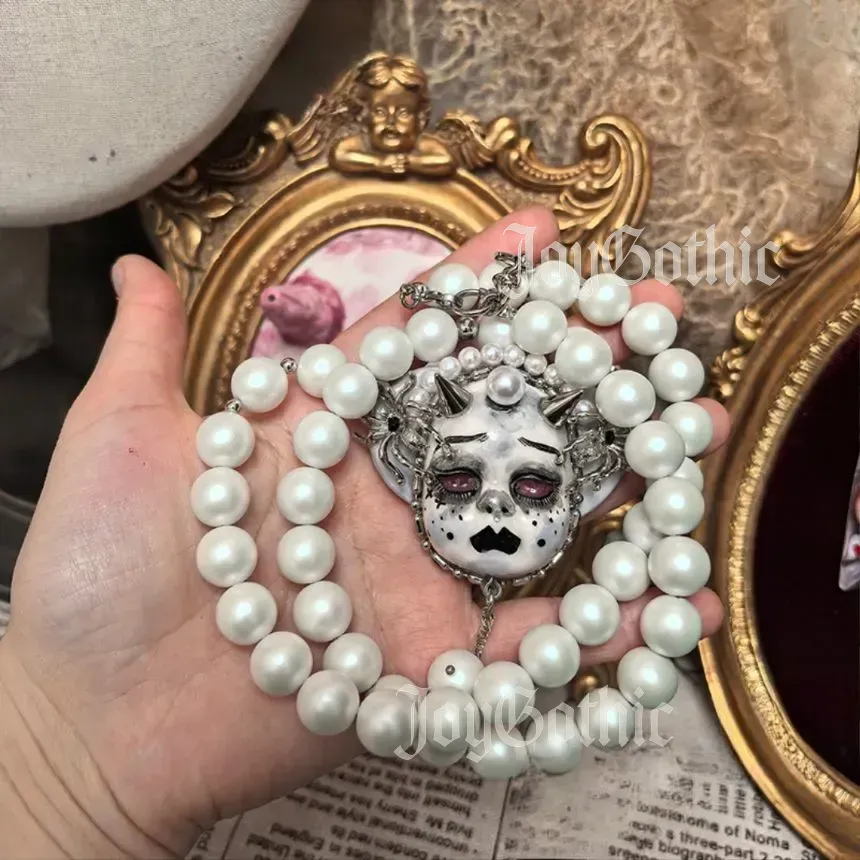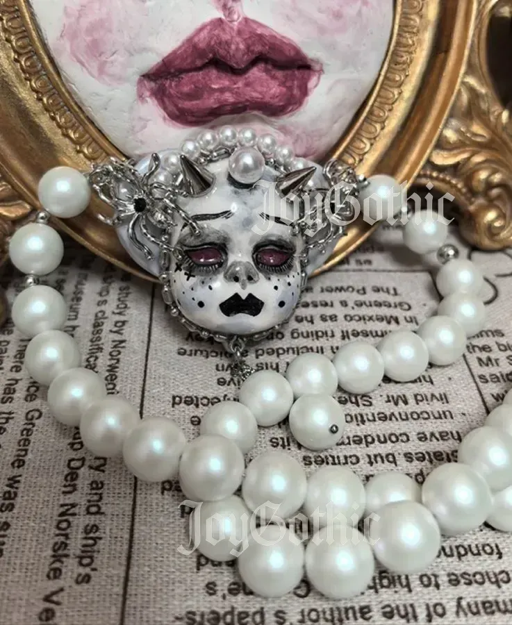 Every detail, from clay shaping, to hand-painted goth makeup, and to careful pearl placement, is a reflection of this mindfulness. It’s designed for those who find beauty in the overlooked, who celebrate individuality in small gestures, and who want dark feminine accessories that speak the language of their lifestyle. This necklace doesn’t just complete an outfit, it completes a feeling, a moment, and a personal story.