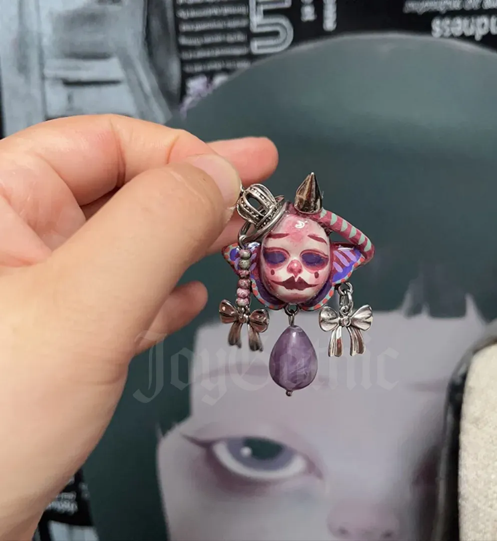 The doll face looks fragile at first glance, almost innocent. But stay with it longer and something shifts. The hand-painted doll expression carries tension, like a smile that learned how to survive. This gothic brooch isn’t playful. It’s emotional armor for anyone who’s ever felt too strange, too sensitive, or too real for the room.