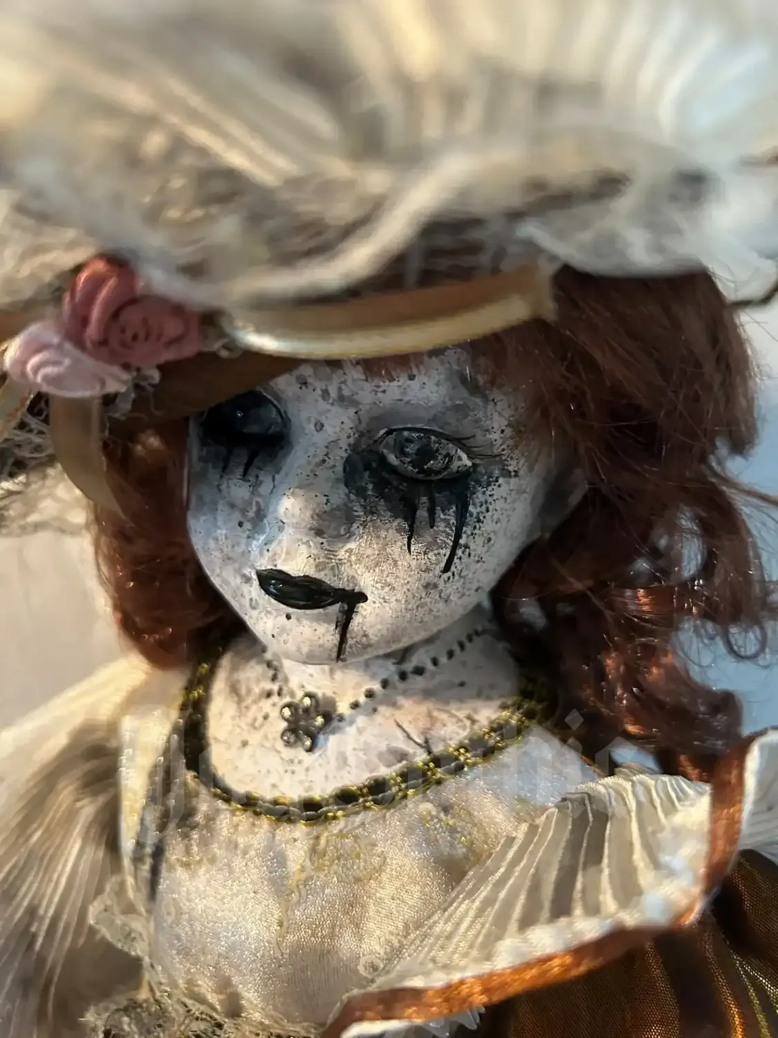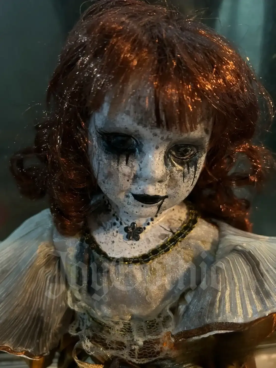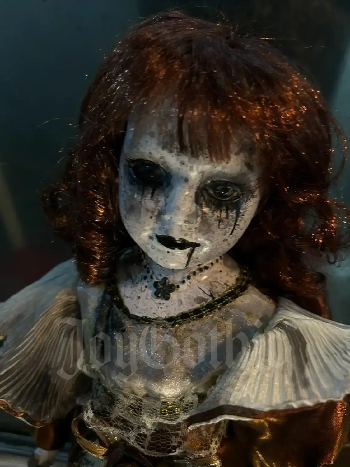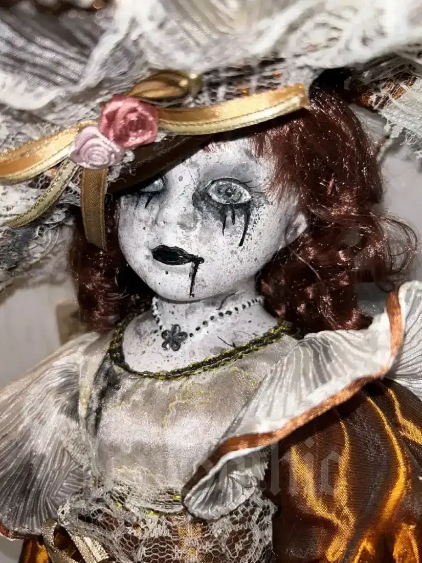 This creepy gothic doll exists for people who never felt represented by pastel beauty or mass-produced collectibles. She carries decay, romance, and quiet rebellion in every detail. Her expression is frozen between life and afterlife, made to be unsettling in the most beautiful way.