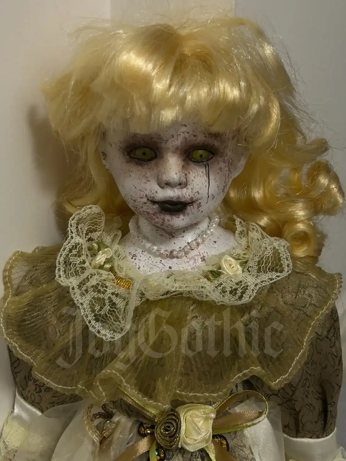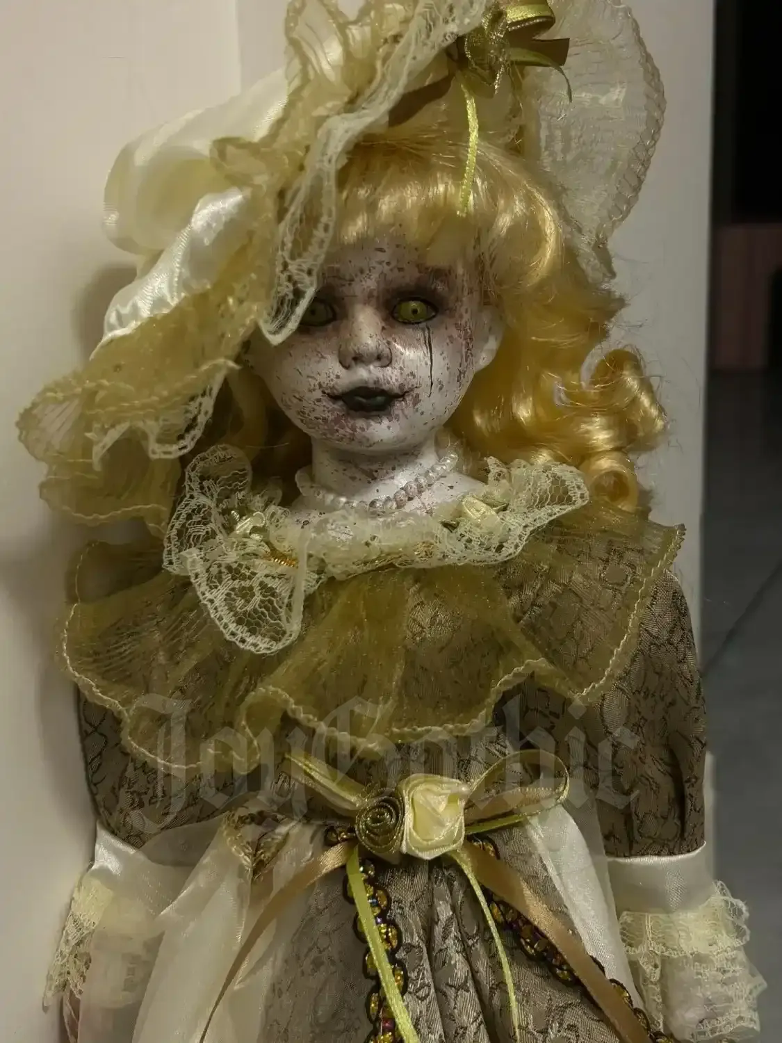 Collectors choose pieces like this because they want something personal. Something that reflects their darker aesthetic, their love of horror, and their rejection of the cute and predictable. This creepy doll is not designed to blend in. She is designed to live on a shelf, altar, or display where she quietly dominates the space. Once she arrives, she does not disappear into the background. She becomes part of the room and part of you.