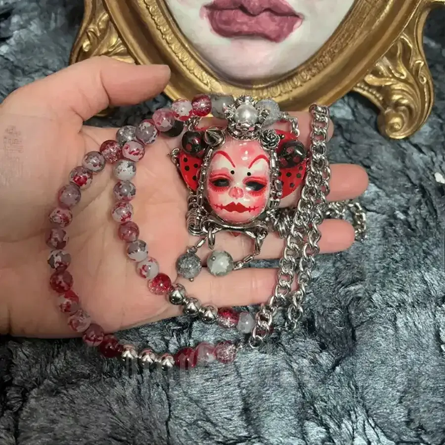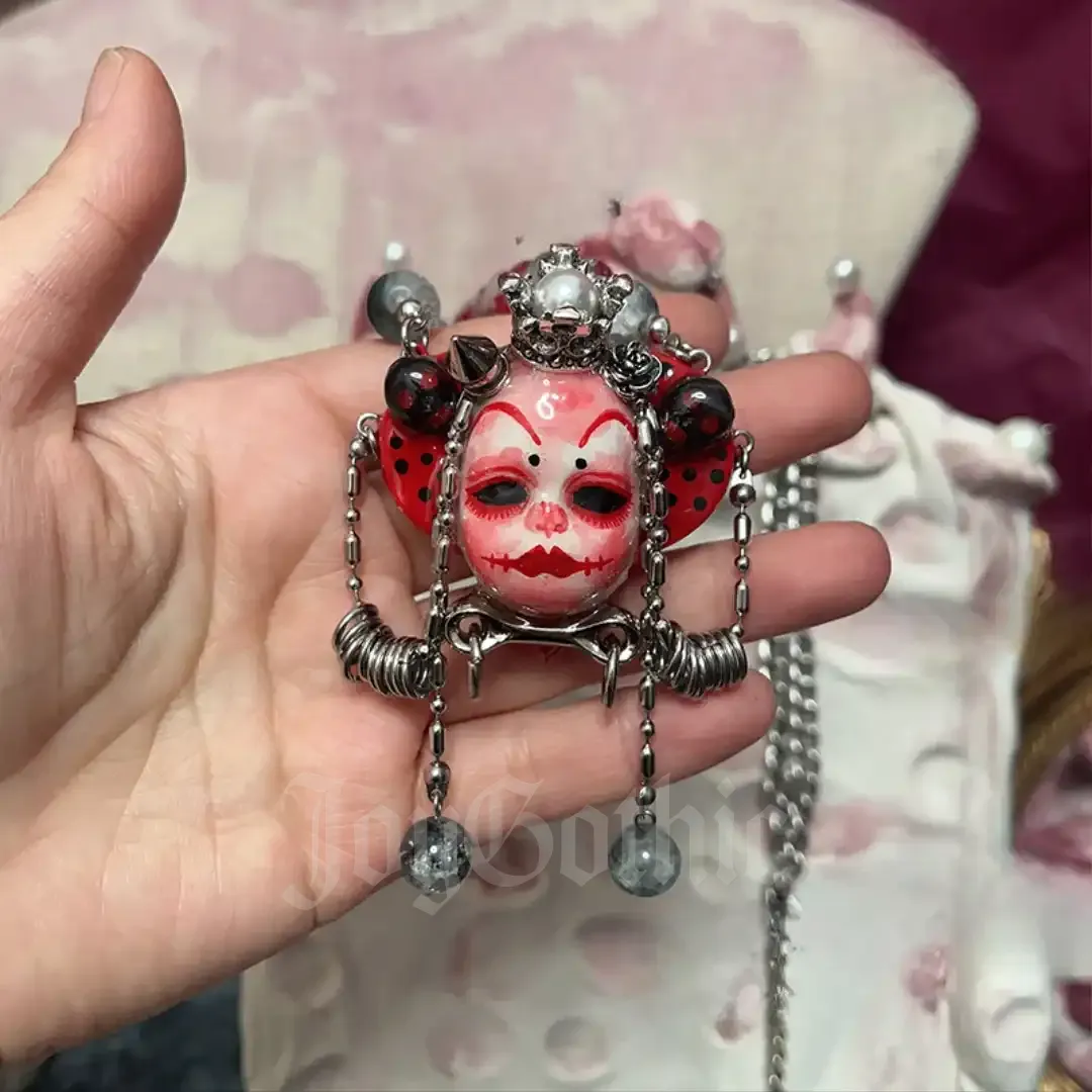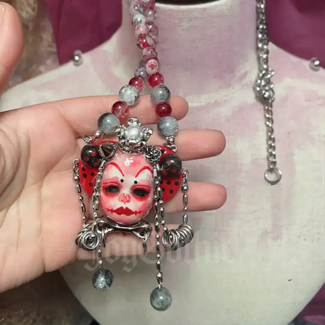 Every time you put it on, it becomes armor. Not loud. Not fake. Just honest. The haunting doll face, the deep red and gray tones, the raw handmade texture all exist to connect with those who feel unseen by mainstream fashion. This is dark goth jewelry for nights, concerts, and quiet moments when you want the outside to match the inside.