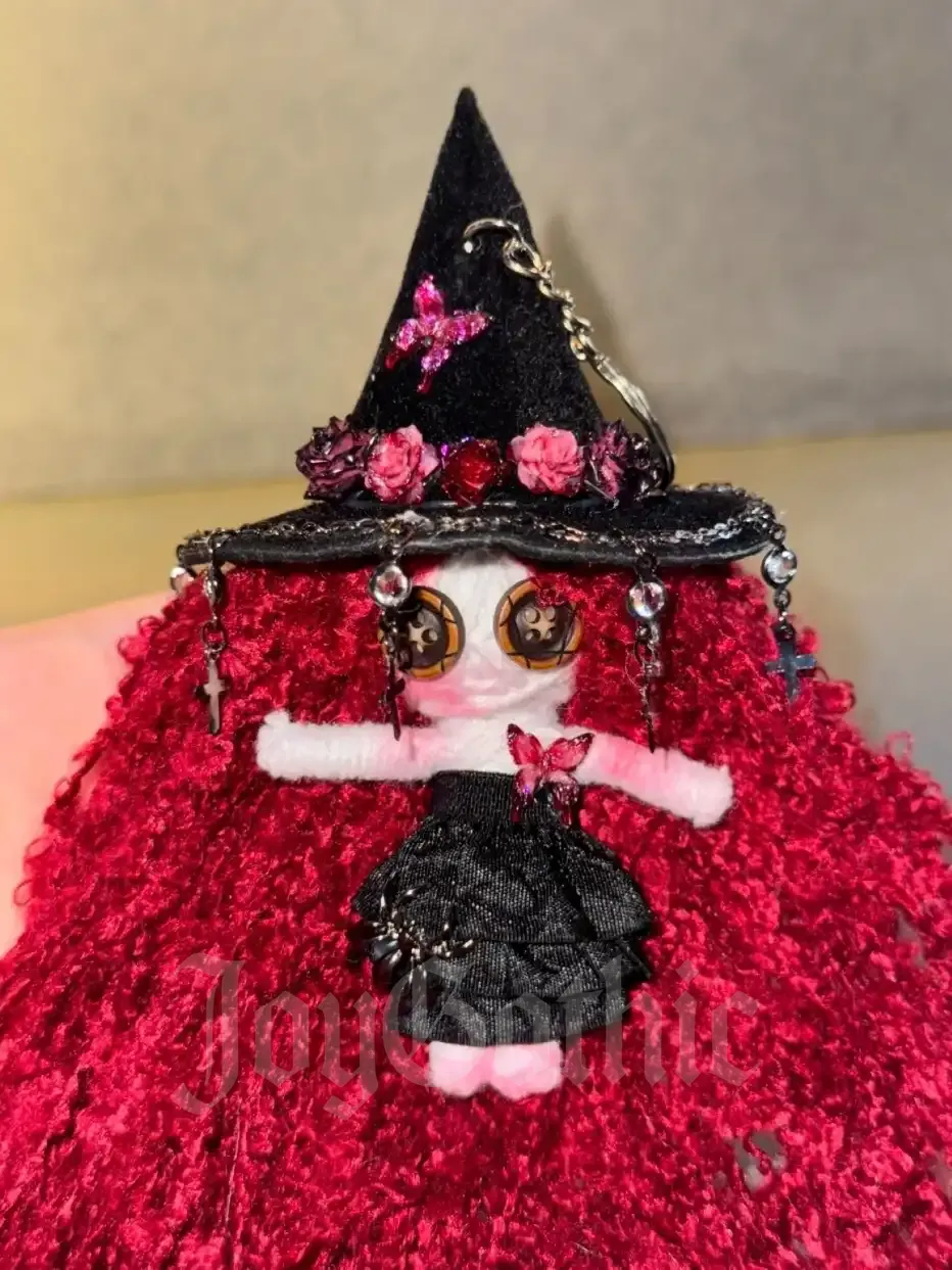 This witch doll keychain is fully handmade. Minor imperfections such as visible glue marks, asymmetry, or texture variation are normal and part of the piece’s character. No two dolls are exactly alike.
