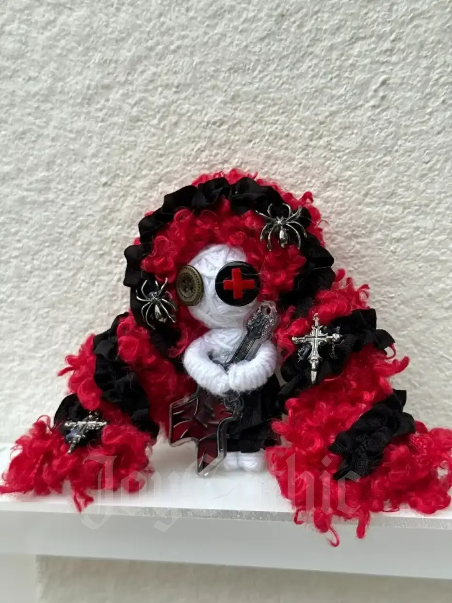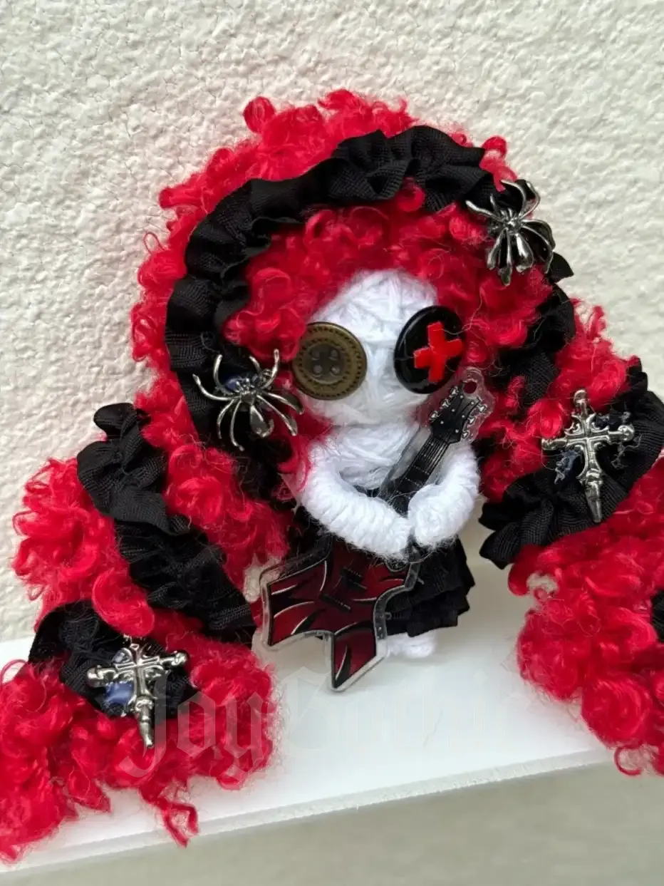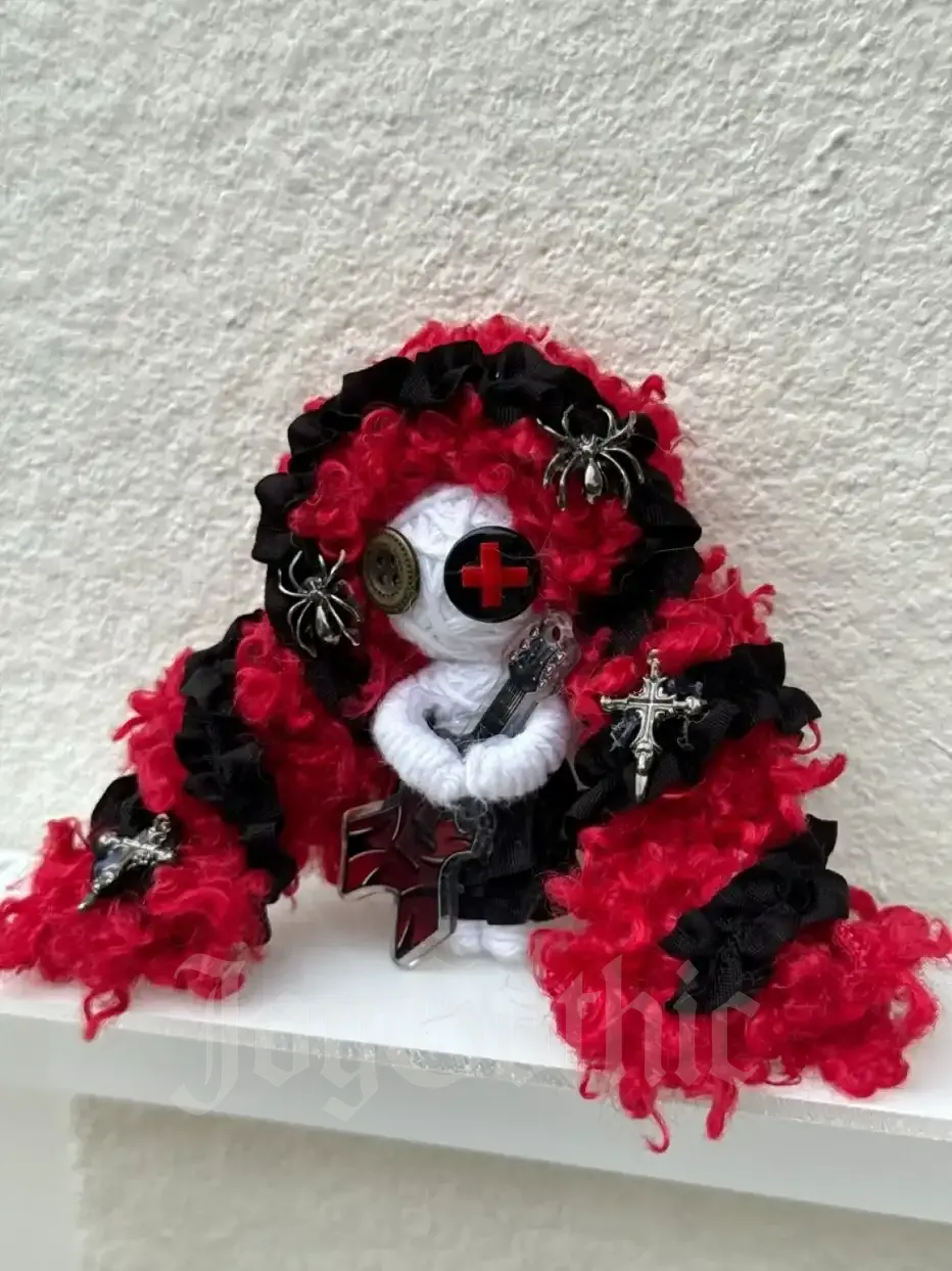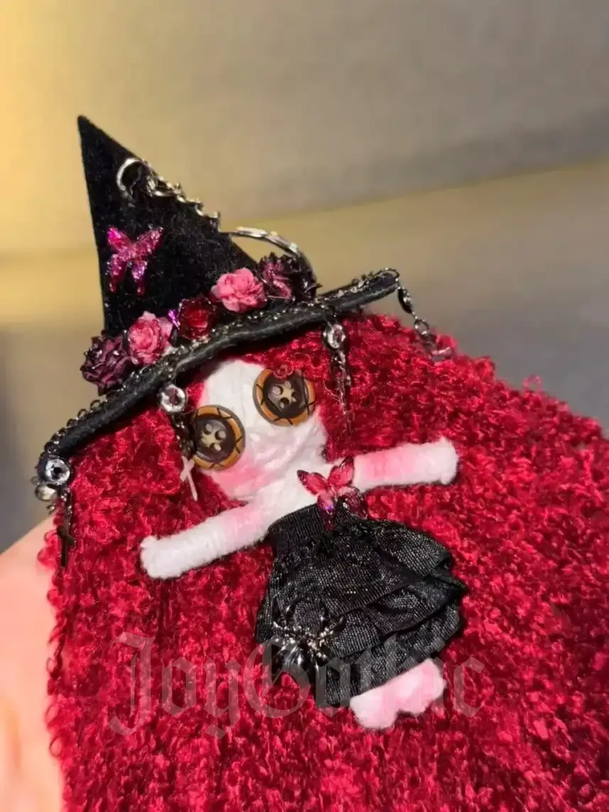 Most accessories feel mass-produced and empty. This gothic witch doll keychain exists for people who want meaning, not decoration. Spiders, crosses, stitched eyes, and red hair reflect obsession, protection, and dark devotion. It’s for those who see love as intense, symbolic, and unapologetically different.